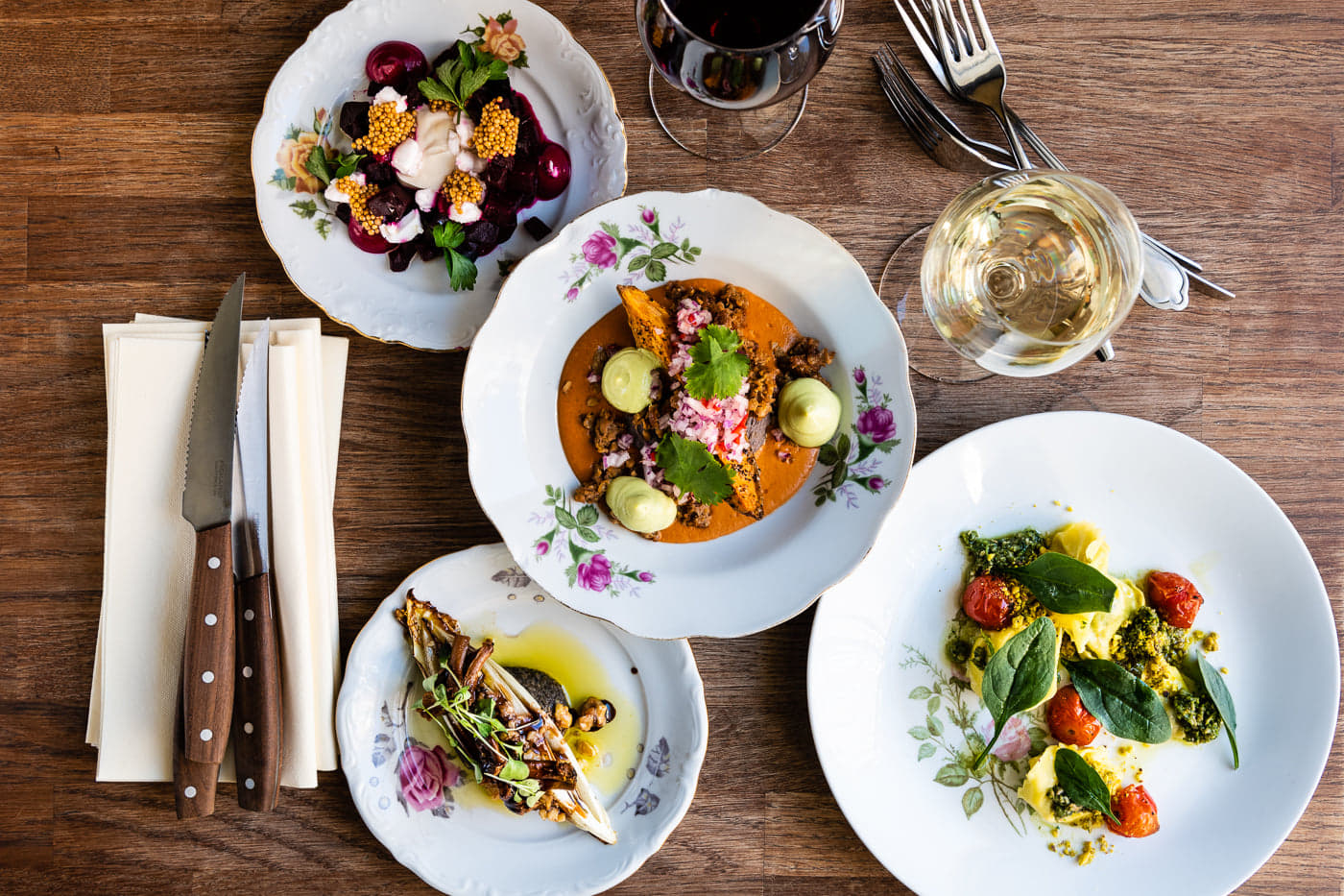 Magussa on itse asiassa loistava viinivalikoima, joka keskittyy erityisesti natu-viineihin, joten käsidesit voi jättää hygienian ylläpitoon. Koronan torjuminen onkin otettu ravintolassa hyvin vakavasti: asiakasmäärissä ja etäisyyksissä otetaan hallituksen rajoitukset huomioon ja käsidesiä on runsaasti tarjolla. Työntekijöiden terveydentilaa ja mahdollisia altistumisia seurataan tarkasti ja tarvittaessa heidät testataan yrityksen kustannuksella ensi tilassa.